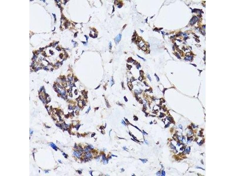 - This gene encodes a tumor suppressor protein containing transcriptional activation, DNA binding, and oligomerization domains. The encoded protein responds to diverse cellular stresses to regulate expression of target genes, thereby inducing cell cycle arrest, apoptosis, senescence, DNA repair, or changes in metabolism. Mutations in this gene are associated with a variety of human cancers, including hereditary cancers such as Li-Fraumeni syndrome. Alternative splicing of this gene and the use of alternate promoters result in multiple transcript variants and isoforms. Additional isoforms have also been shown to result from the use of alternate translation initiation codons from identical transcript variants (PMIDs: 12032546, 20937277).,BCC7,LFS1,P53,TRP53,p53,TP53,BMFS5,Epigenetics & Nuclear Signaling,Transcription Factors,DNA Damage & Repair,Cancer,Tumor suppressors,p53 pathway,Signal Transduction,PI3K-Akt Signaling Pathway,ErbB-HER Signaling Pathway,MAPK-JNK Signaling Pathway,MAPK-P38 Signaling Pathway,Cell Biology & Developmental Biology,Apoptosis,Mitochondrial Control of Apoptosis,Cell Cycle,Cell cycle inhibitors,G1/S Checkpoint,G2/M DNA Damage Checkpoint,Endocrine & Metabolism,AMPK Signaling Pathway,Warburg Effect,Neuroscience,Neurodegenerative Diseases,TP53