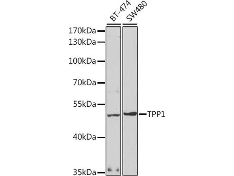 - This gene encodes a member of the sedolisin family of serine proteases. The protease functions in the lysosome to cleave N-terminal tripeptides from substrates, and has weaker endopeptidase activity. It is synthesized as a catalytically-inactive enzyme which is activated and auto-proteolyzed upon acidification. Mutations in this gene result in late-infantile neuronal ceroid lipofuscinosis, which is associated with the failure to degrade specific neuropeptides and a subunit of ATP synthase in the lysosome.,TPP1,CLN2,GIG1,LPIC,SCAR7,TPP-1,Cell Biology & Developmental Biology,Ubiquitin,Neuroscience,Neurodegenerative Diseases,TPP1