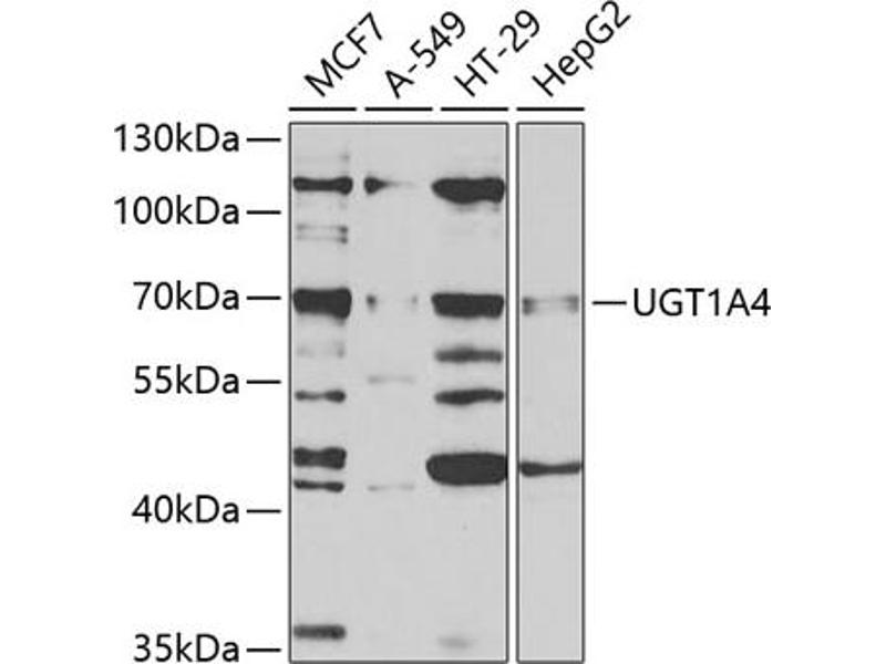 The Rabbit Polyclonal anti-UGT1A4 antibody has been validated for WB. It is suitable to detect UGT1A4 in samples from Human.