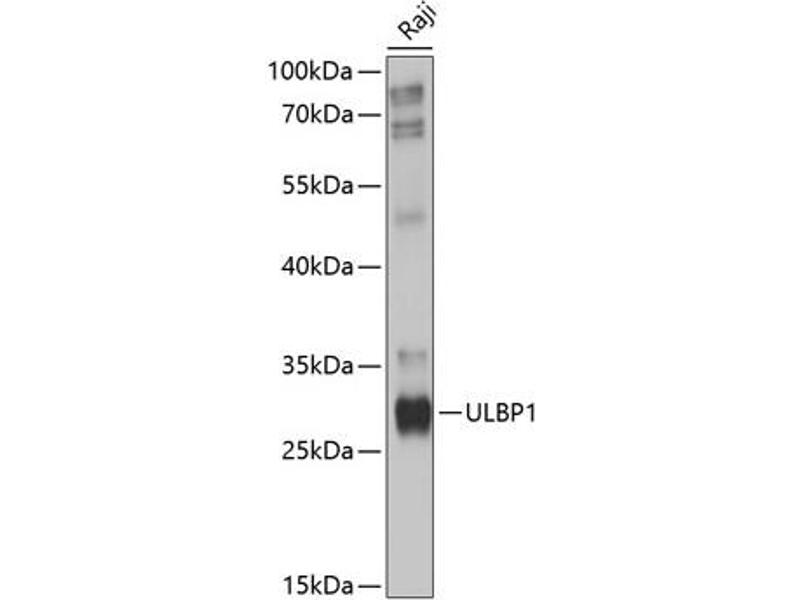 The protein encoded by this gene is a ligand of natural killer group 2, member D (NKG2D), an immune system-activating receptor on NK cells and T-cells. Binding of the encoded ligand to NKG2D leads to activation of several signal transduction pathways, including those of JAK2, STAT5, ERK and PI3K kinase/Akt. Also, in cytomegalovirus-infected cells, this ligand binds the UL16 glycoprotein and is prevented from activating the immune system. Three transcript variants encoding different isoforms have been found for this gene.,ULBP1,N2DL-1,NKG2DL1,RAET1I,Immunology & Inflammation,Toll-like Receptor Signaling Pathway,Cell Intrinsic Innate Immunity Signaling Pathway,TLR Signaling,ULBP1