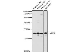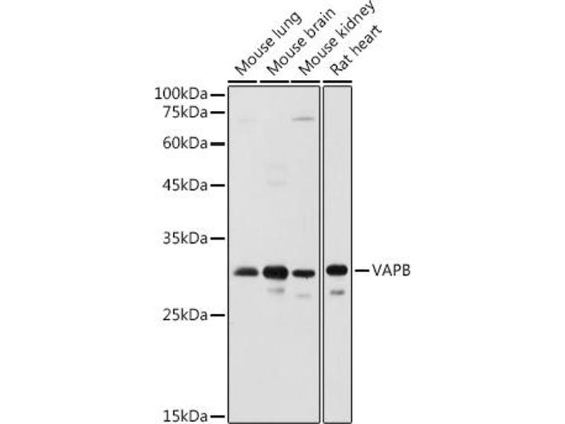The protein encoded by this gene is a type IV membrane protein found in plasma and intracellular vesicle membranes. The encoded protein is found as a homodimer and as a heterodimer with VAPA. This protein also can interact with VAMP1 and VAMP2 and may be involved in vesicle trafficking.,VAPB,ALS8,VAMP-B,VAP-B,Cancer,Signal Transduction,Endocrine & Metabolism,Lipid Metabolism,VAPB