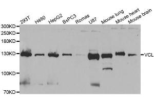 Vinculin is a cytoskeletal protein associated with cell-cell and cell-matrix junctions, where it is thought to function as one of several interacting proteins involved in anchoring F-actin to the membrane. Defects in VCL are the cause of cardiomyopathy dilated type 1W. Dilated cardiomyopathy is a disorder characterized by ventricular dilation and impaired systolic function, resulting in congestive heart failure and arrhythmia. Multiple alternatively spliced transcript variants have been found for this gene, but the biological validity of some variants has not been determined.,VCL,CMD1W,CMH15,HEL114,MV,MVCL,vinculin,Signal Transduction,Cell Biology & Developmental Biology,Cytoskeleton,Microfilaments,Actins,Cardiovascular,Heart,Contractility,Cardiac arrhythmias,VCL