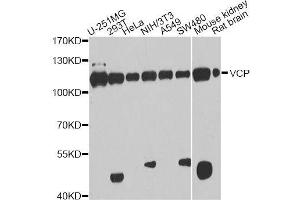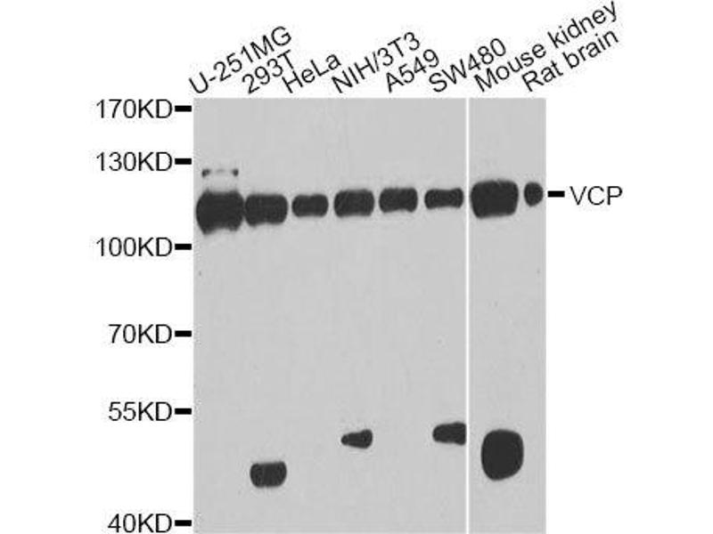 The protein encoded by this gene is a member of a family that includes putative ATP-binding proteins involved in vesicle transport and fusion, 26S proteasome function, and assembly of peroxisomes. This protein, as a structural protein, is associated with clathrin, and heat-shock protein Hsc70, to form a complex. It has been implicated in a number of cellular events that are regulated during mitosis, including homotypic membrane fusion, spindle pole body function, and ubiquitin-dependent protein degradation.,VCP,ALS14,CDC48,CMT2Y,HEL-220,HEL-S-70,IBMPFD,IBMPFD1,TERA,p97,Signal Transduction,Cell Biology & Developmental Biology,Apoptosis,Endocrine & Metabolism,Mitochondrial metabolism,Mitochondrial markers,Neuroscience,Neurodegenerative Diseases,Dopamine Signaling in Parkinson's Disease,VCP