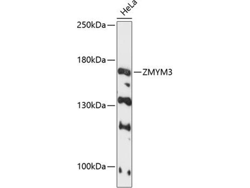 - Recombinant fusion protein containing a sequence corresponding to amino acids 140-300 of human ZMYM3 (NP_001164634.1).