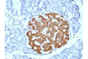 The Mouse Monoclonal anti-Insulin antibody has been validated for IF, FACS and IHC (f). It is suitable to detect Insulin in samples from Human, Mouse, Pig, Cow and Rat.