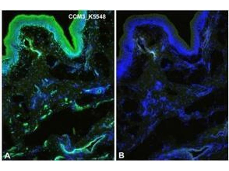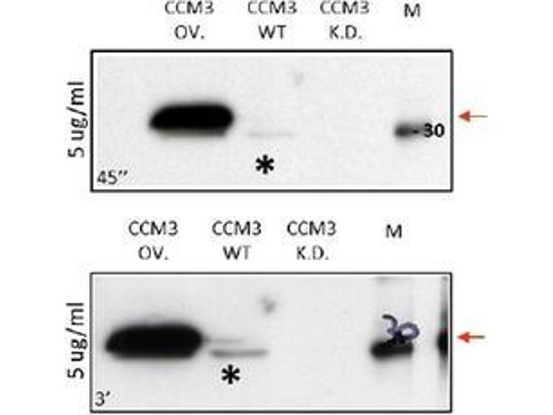 Cerebral cavernous malformations (CCMs) are sporadically acquired or inherited vascular lesions of the central nervous system consisting of clusters of dilated thin-walled blood vessels that predispose individuals to seizures and stroke. Mutations in CCM1, CCM2, or CCM3 lead to cerebral cavernous malformations, one of the most common hereditary vascular diseases of the brain. Endothelial cells within these lesions are the main disease compartments. Here, we show that adenoviral CCM3 expression inhibits endothelial cell migration, proliferation, and tube formation while down regulation of endogenous CCM3 results in increased formation of tube-like structures. Adenoviral CCM3 expression does not induce apoptosis under normal endothelial cell culture conditions but protects endothelial cells from staurosporine-induced cell death. Tyrosine kinase activity profiling suggests that CCM3 supports PDPK-1/Akt-mediated endothelial cell quiescence and survival (Schleider et al, Neurogenetics 12, 2011).Synonyms: CCM3, Cerebral cavernous malformations 3 protein, Programmed cell death protein 10, TF-1 cell apoptosis-related protein 15, TFAR15