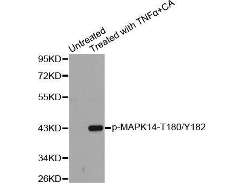 Quick Overview for MAPK14 antibody (pThr180, pTyr182) (ABIN3020064)