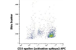 The mouse monoclonal antibody APA1/1 recognizes an activation-dependent intracellular epitope of CD3 epsilon. Exposure of the epitope precedes CD3 phosphorylation and recruitment and activation of ZAP70, which initiates the signaling cascade produced by T-cell activation. APA1/1 provides the earliest known marker for TCR-mediated T cell activation.
