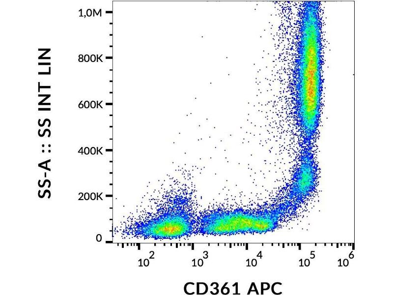 The mouse monoclonal antibody MEM-216 recognizes an extracellular epitope of CD361 / EVI2B, almost uncharacterized type I transmembrane protein with broad leukocyte expression, mostly in myeloid and B cells.