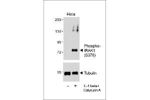 This Phospho-IRAK1(S376) antibody is generated from a rabbit immunized with a KLH conjugated synthetic peptide between 348-381 amino acids from human IRAK1.