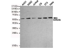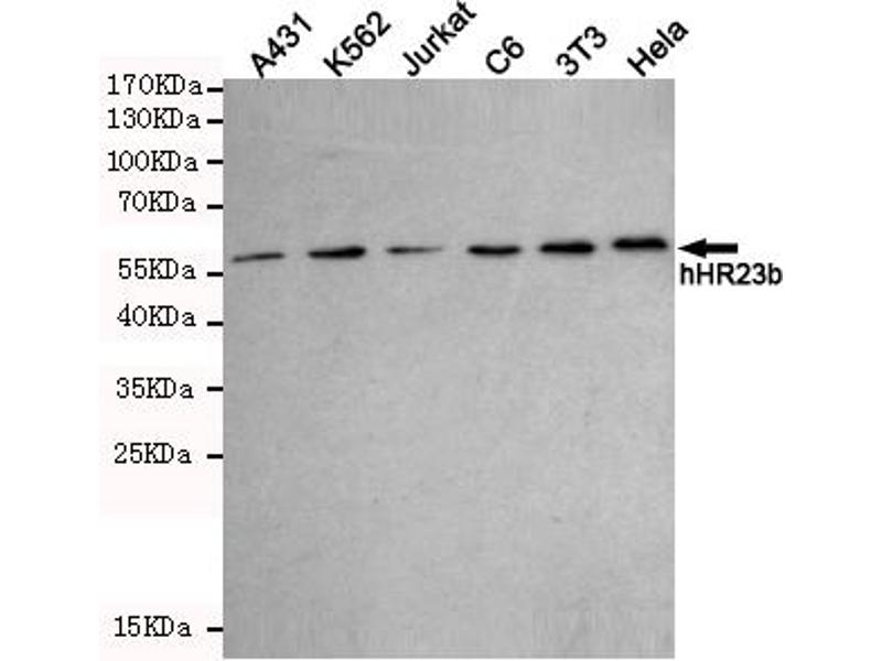 Multiubiquitin chain receptor involved in modulation of proteasomal degradation. Binds to polyubiquitin chains. Proposed to be capable to bind simultaneously to the 26S proteasome and to polyubiquitinated substrates and to deliver ubiquitinated proteins to the proteasome. May play a role in endoplasmic reticulum- associated degradation (ERAD) of misfolded glycoproteins by association with PNGase and delivering deglycosylated proteins to the proteasome. The XPC complex is proposed to represent the first factor bound at the sites of DNA damage and together with other core recognition factors, XPA, RPA and the TFIIH complex, is part of the pre-incision (or initial recognition) complex. The XPC complex recognizes a wide spectrum of damaged DNA characterized by distortions of the DNA helix such as single-stranded loops, mismatched bubbles or single-stranded overhangs. The orientation of XPC complex binding appears to be crucial for inducing a productive NER. XPC complex is proposed to recognize and to interact with unpaired bases on the undamaged DNA strand which is followed by recruitment of the TFIIH complex and subsequent scanning for lesions in the opposite strand in a 5'-to-3' direction by the NER machinery. Cyclobutane pyrimidine dimers (CPDs) which are formed upon UV-induced DNA damage esacpe detection by the XPC complex due to a low degree of structural perurbation. Instead they are detected by the UV-DDB complex which in turn recruits and cooperates with the XPC complex in the respective DNA repair. In vitro, the XPC:RAD23B dimer is sufficient to initiate NER, it preferentially binds to cisplatin and UV-damaged double-stranded DNA and also binds to a variety of chemically and structurally diverse DNA adducts. XPC:RAD23B contacts DNA both 5' and 3' of a cisplatin lesion with a preference for the 5' side. XPC:RAD23B induces a bend in DNA upon binding. XPC:RAD23B stimulates the activity of DNA glycosylases TDG and SMUG1.