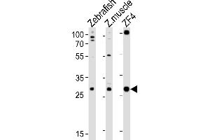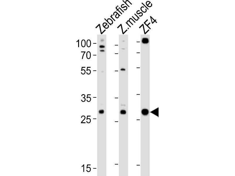 This (DANRE) ak2 antibody is generated from a rabbit immunized with a KLH conjugated synthetic peptide between 2-36 amino acids from the N-terminal region of (DANRE) ak2.