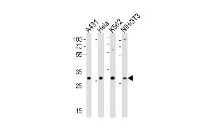 This CDK5 antibody is generated from a rabbit immunized with a KLH conjugated synthetic peptide between 254-289 amino acids from the C-terminal region of human CDK5.