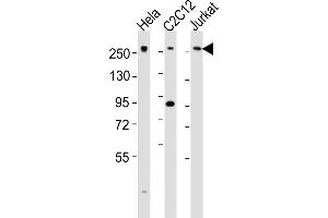 This Mouse Med12 antibody is generated from a rabbit immunized with a KLH conjugated synthetic peptide between 1991-2025 amino acids from the C-terminal region of Mouse Med12.