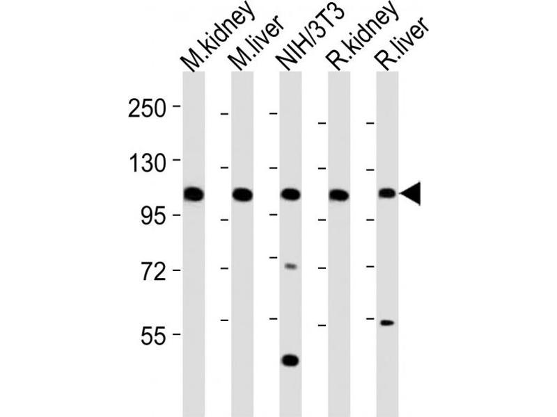 This Mouse Mertk antibody is generated from a rabbit immunized with a KLH conjugated synthetic peptide between 946-980 amino acids from the C-terminal region of mouse Mertk.