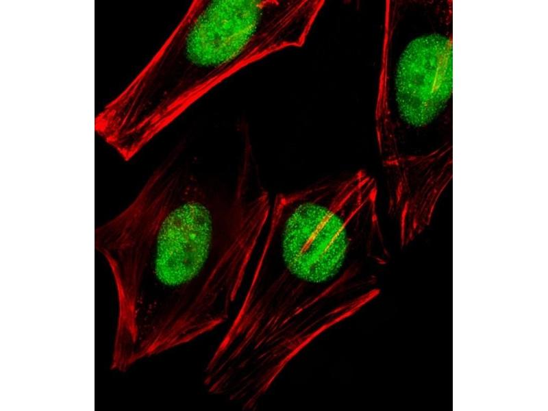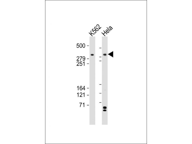 This TRRAP antibody is generated from a rabbit immunized with a KLH conjugated synthetic peptide between 3015-3049 amino acids from the C-terminal region of human TRRAP.