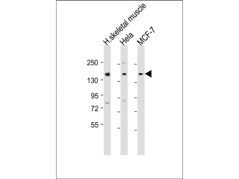 This TNRC6A antibody is generated from a rabbit immunized with a KLH conjugated synthetic peptide between 855-885 amino acids from the Central region of human TNRC6A.