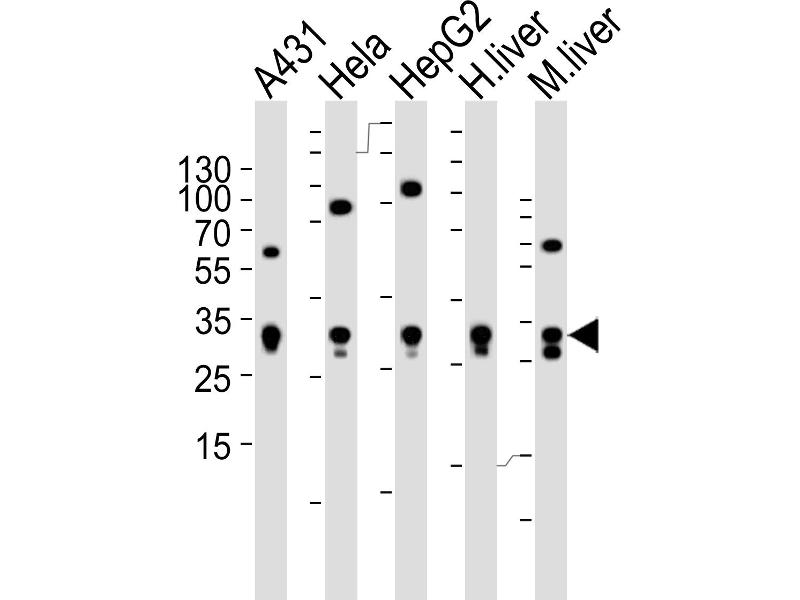 - This antibody is purified through a protein A column, followed by peptide affinity purification.