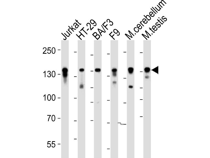 This Mouse Ctr9 antibody is generated from a rabbit immunized with a KLH conjugated synthetic peptide between 1022-1056 amino acids from the C-terminal region of Mouse Ctr9.