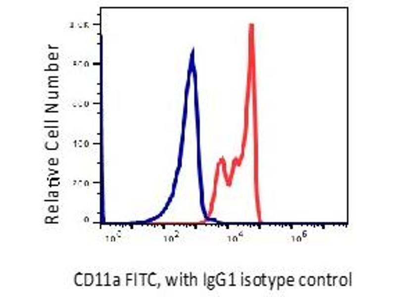 The clone recognizes a 170-180 kD alpha chain of a type I transmembrane glycoprotein also known as CD11a or LFA-1a. It is also known as LFA-1a. CD11a non-covalently associates with integrin ß2 (CD18) to form LFA-1. CD11a is abundantly expressed on all leukocytes, including B and T lymphocytes, monocytes, macrophages, neutrophils, basophils and eosinophils but does not express by the non-hematopoietic tissues and platelets. Up-regulation of CD11a on activated lymphocytes is required to induce their immune response. Absence or reduced CD11a expression on tumor cells helps to escape from regular immune surveillance and it may be one of reason of in vivo tumor generation.