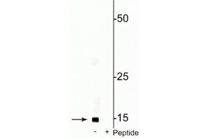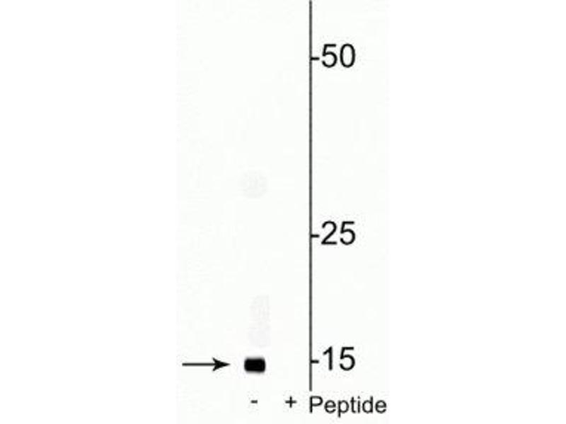 - Specific for endogenous levels of the ~17 kDa COXIV-1 protein phosphorylated at Ser58. Immunolabeling is blocked by preadsorption with the phosphopeptide used as antigen, but not by the corresponding non-phosphopeptide.