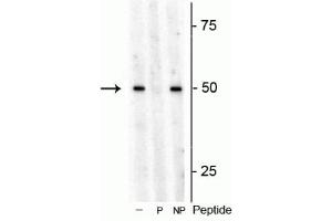 - Specific for endogenous levels of the ~53 kDa S6K1 protein phosphorylated at Thr449. Immunolabeling is blocked by preadsorption with the phosphopeptide used as antigen, but not by the corresponding non-phosphopeptide.