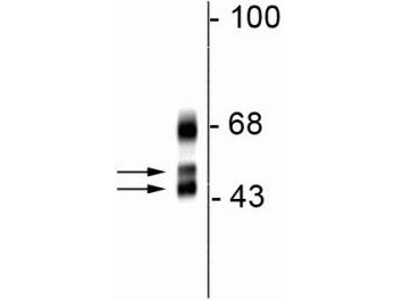 - Specific for endogenous levels of the ~46/48 kD FOX1 protein doublet.