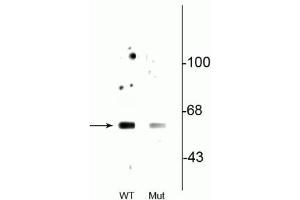 - Specific for endogenous levels of the ~60 kDa beclin1 protein phosphorylated at Ser234. Immunolabeling of the beclin-1 band is decreased in the beclin-1 alanine substitution mutant.