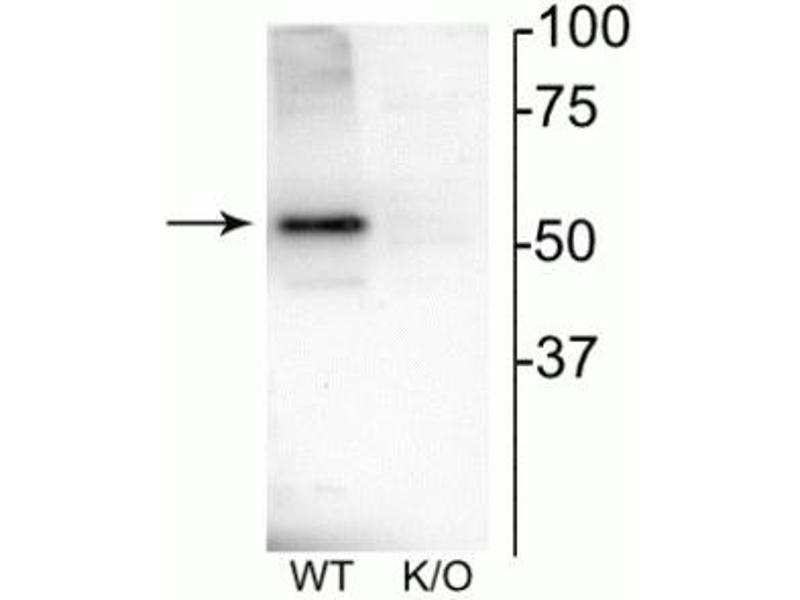 - Specific for endogenous levels of the ~52 kDa nAChRβ4 protein.