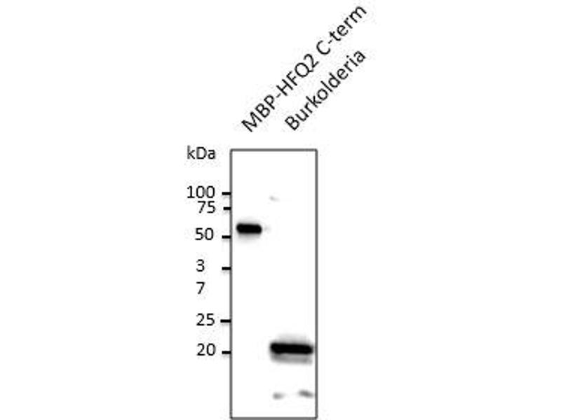 This anti-HFQ2 antibody is a Goat Polyclonal antibody detecting HFQ2 in WB. Suitable for Burkholderia.