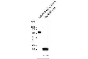 Purified recombinant peptide derived from within residues 130 aa to the C-terminus of Burkholderia cenocepacia HFQ2 produced in E. coli.