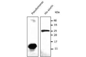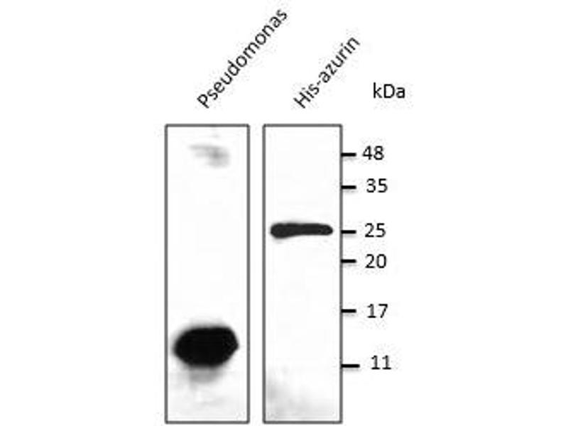 Goat polyclonal antibody to Azurin. This protein is a redox partner for enzymes such as nitrite reductase or arsenite oxidase. It transfers electrons from cytochrome c551 to cytochrome oxidase.