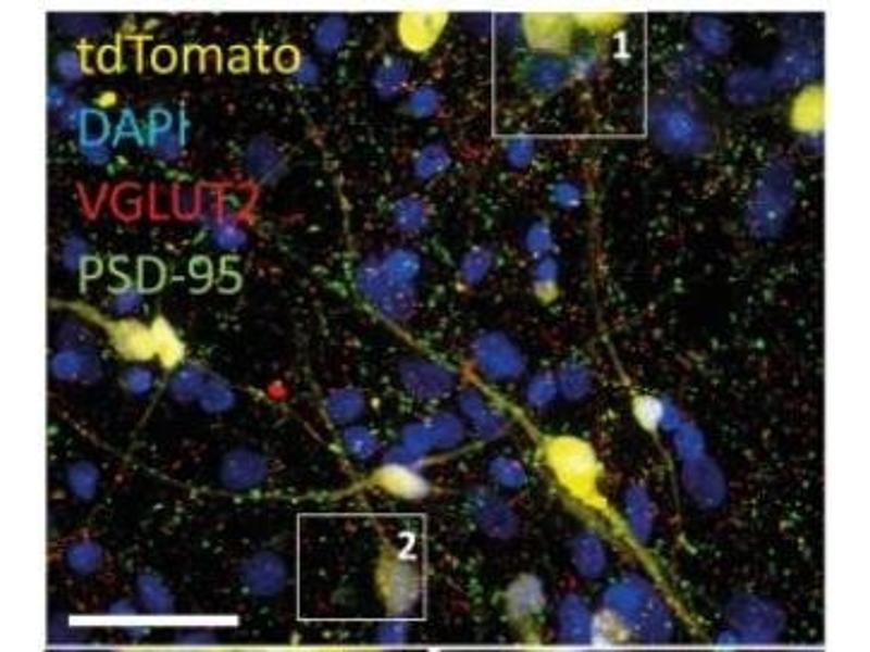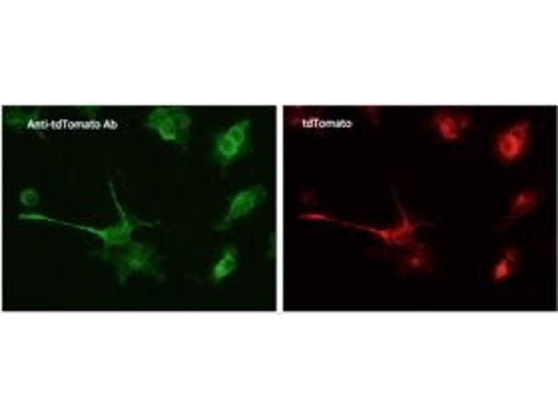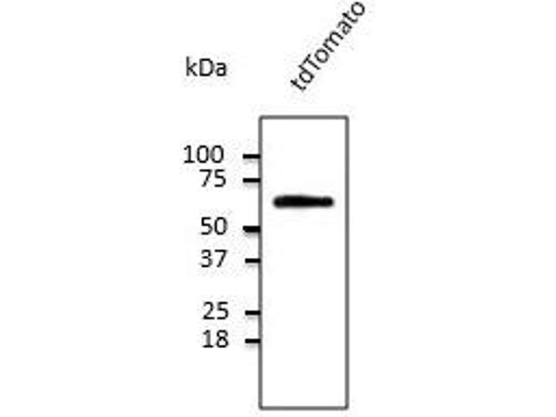 In 293HEK cells transfected with cds plasmid detects a band of 55 kDa by Western blot. It also detects tdTomato in brain sections by IHC. This antibody (AB8181) is specific for tdTomato and mCherry proteins. It does not cross-react to GFP (green fluorescent protein).