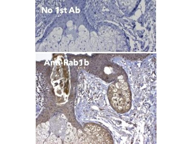- Detects endogenous levels of Rab1b protein by Western blot in whole cell lysates and transfected cells with GFP-Rab1b cds.