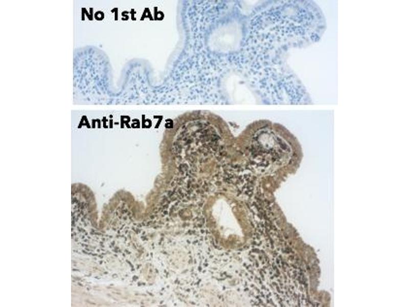 - Detects Rab7a protein in the human, rat and mouse whole cell lysates and transfected cells with GFP-Rab7a by Western blot. This Ab is specific for Rab7a.