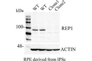 - Detects endogenous Rep1 and in transfected cells by Western blot.