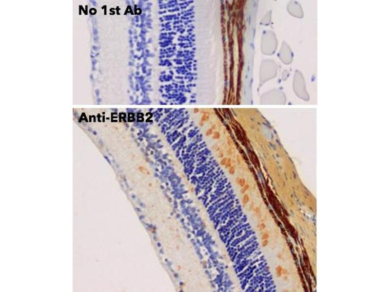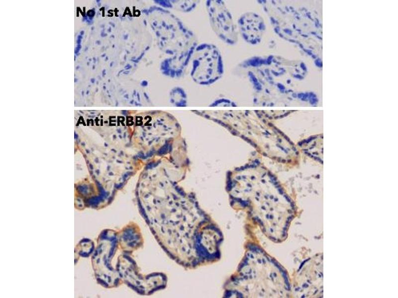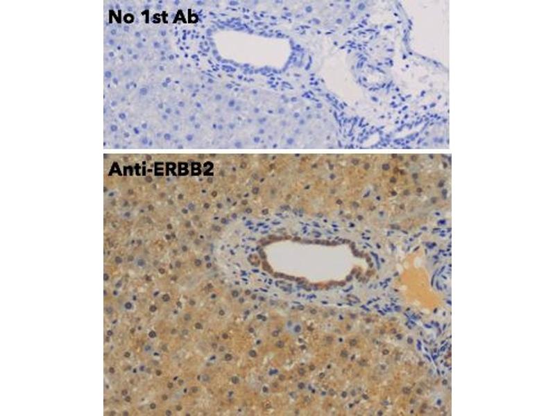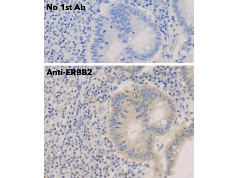 - Purified recombinant peptide derived from within residues 1,177 aa to the C-terminus of human ERBB2 produced in E. coli.