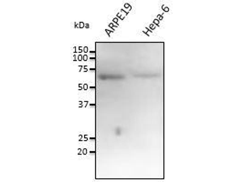 - Detects a band of 55-60 kDa by Western blot in the following canine, human, monkey, mouse, rat whole cell lysates.