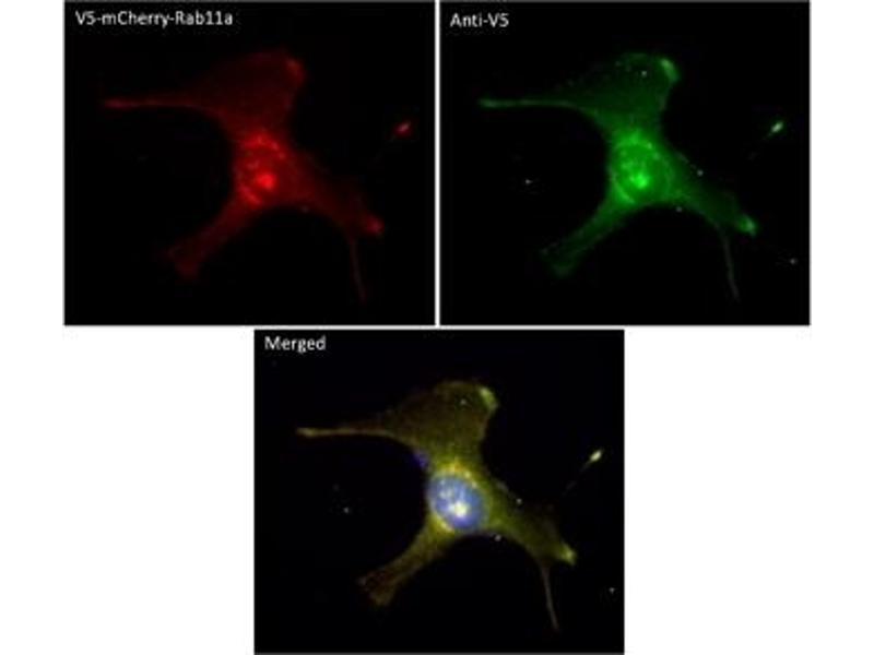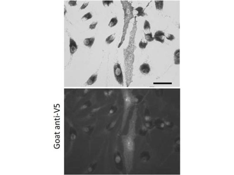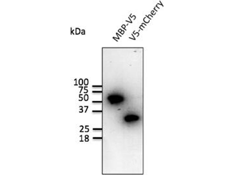 - Reacts specifically with V5-tagged recombinant fusion proteins expressed in transfected mammalian cells or produced by in vitro translation.