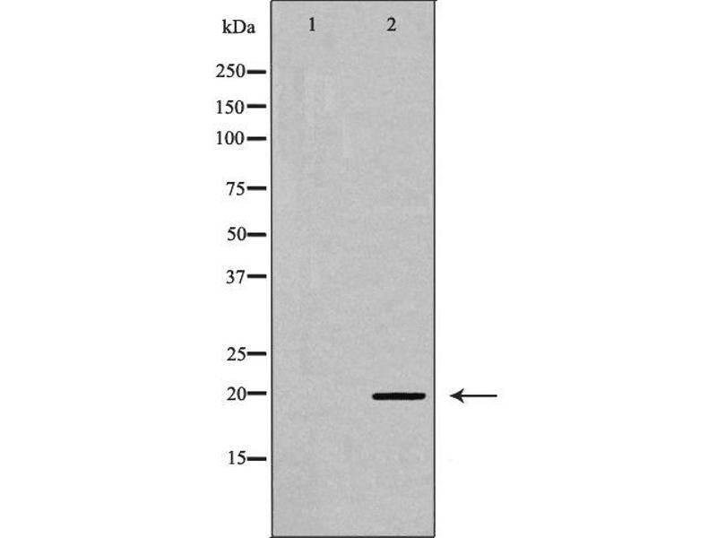 Phospho-MRLC1 (Ser19) Antibody detects endogenous levels of MRLC1 only when phosphorylated at Ser19.