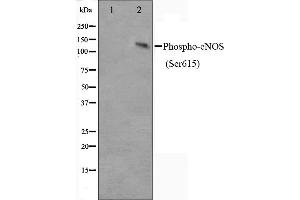 - Phospho-eNOS (Ser615) Antibody detects endogenous levels of eNOS only when phosphorylated at Sersine 615.