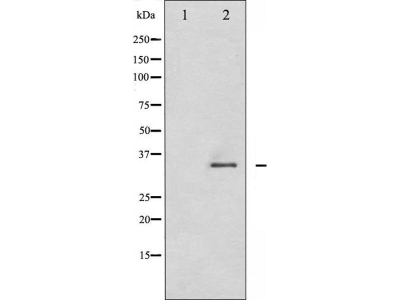 Phospho-CDK2 (Thr160) Antibody detects endogenous levels of CDK2 only when phosphorylated at Threonine 160.