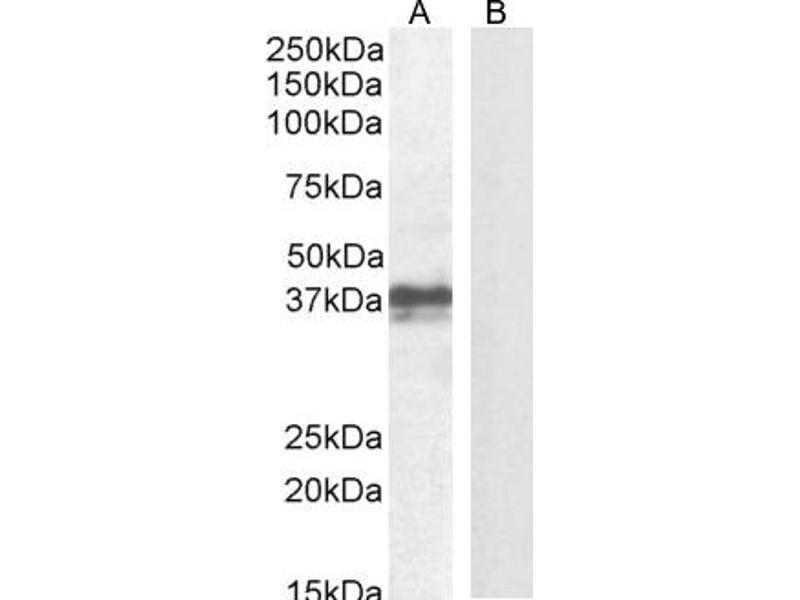 Western Blot: Approx 37-38 kDa band observed in Mouse and Rat Skin lysates (calculated MW of 42.0 kDa according to Mouse NP_001094934.1 and 41.9 kDa according to Rat NP_001102819.1). This band was successfully blocked by incubation with the immunizing pept