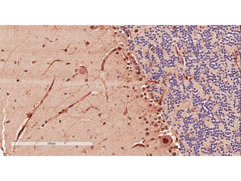 Immunohistochemistry: In paraffin embedded Human Cerebellum shows axonal and incidental nuclear staining. Recommended concentration: 2-4 μg/mL. This antibody has been successfully used in IHC on Rat: Heysieattalab, S et al. (2021) Acta Epileptologica 3, 3