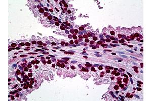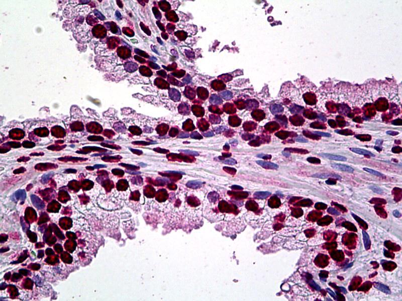 Usage: Immunohistochemistry: Formalin-fixed paraffin-embedded sections. RNAi Knockdown: Antibody validated. Sandwich ELISA: Recombinant protein. Western Blot: Transfected lysate, Recombinant protein. -