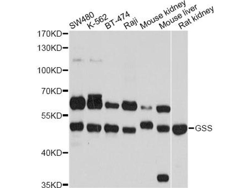 The Rabbit Polyclonal anti-Glutathione Synthetase antibody has been validated for WB, IHC and IF. It is suitable to detect Glutathione Synthetase in samples from Human, Mouse and Rat.