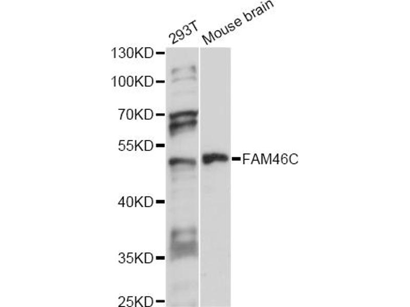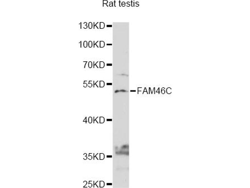 This anti-FAM46C antibody is a Rabbit Polyclonal antibody detecting FAM46C in WB. Suitable for Human, Rat and Mouse.