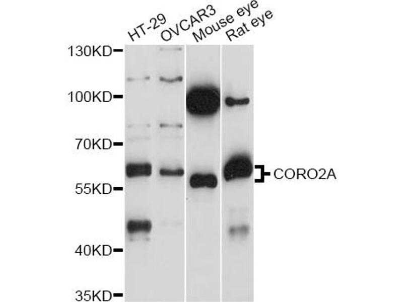 The Rabbit Polyclonal anti-CORO2A antibody has been validated for WB. It is suitable to detect CORO2A in samples from Human, Mouse and Rat.