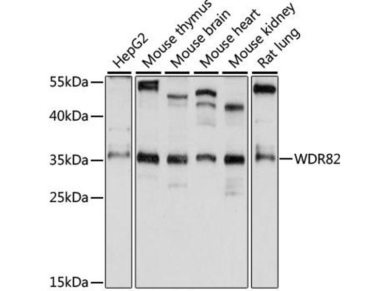 The Rabbit Polyclonal anti-WDR82 antibody has been validated for WB. It is suitable to detect WDR82 in samples from Human, Mouse and Rat.