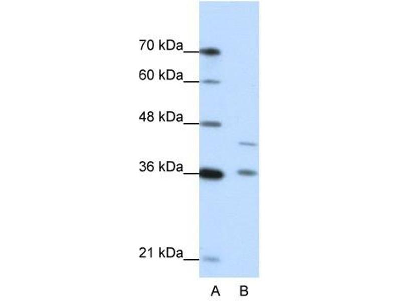 - 34 kDa (MW of target protein)